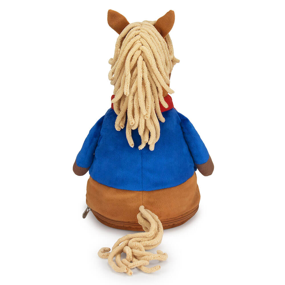 Подарок 2026 конь Билли сшит из мягкого софта коричневого цвета. У него полосатая футболка с синей рубашкой, также красный шарф, который элегантно перевязан. Внутри мягкой игрушки потайной карман на молнии со сладким подарком. Набор конфет 300г Премиум