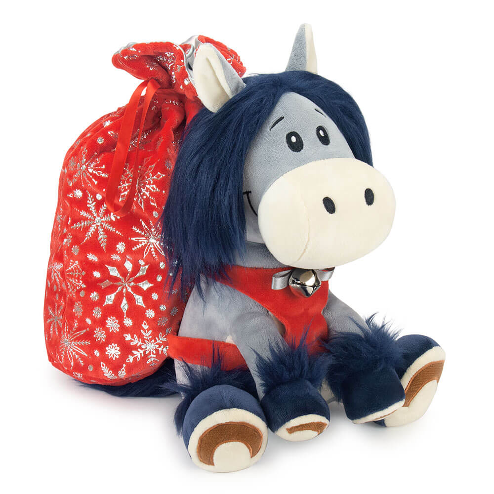 Мягкая игрушка Символ 2026 года. У лошадки одет рюкзачок-мешочек, в котором находится сладкий подарок. Набор конфет 600г Люкс.