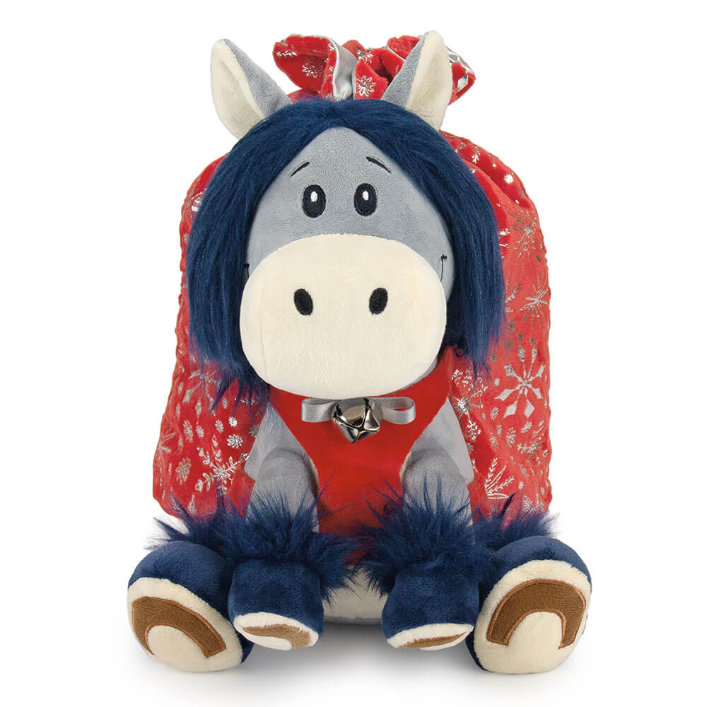 Мягкая игрушка Символ 2026 года. У лошадки одет рюкзачок-мешочек, в котором находится сладкий подарок. Набор конфет 800г Премиум.