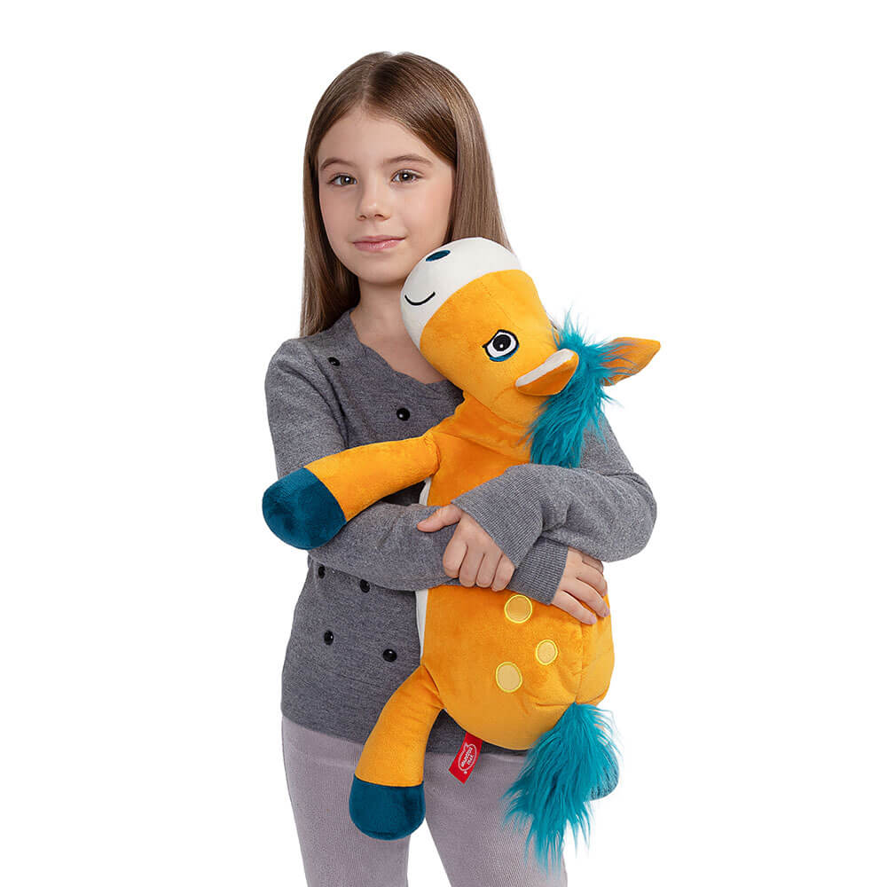 Сладкий подарок Лошадь Янтарь сшита из мягкого софта оранжевого цвета. У нее синий хвостик и ножки. Внутри мягкой игрушки потайной карман на молнии со сладким подарком. Набор конфет 600г Люкс