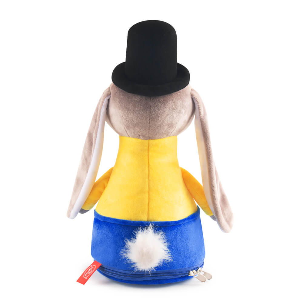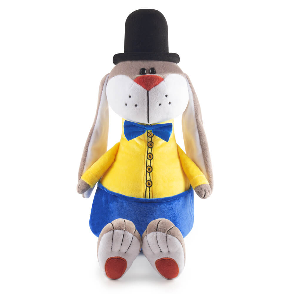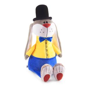 Текстильная упаковка игрушка заяц Чарльз в нарядном костюмчике и черной шляпе.